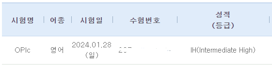 진급에 필요한 OPIC 등급이 IH 이상이었습니다.