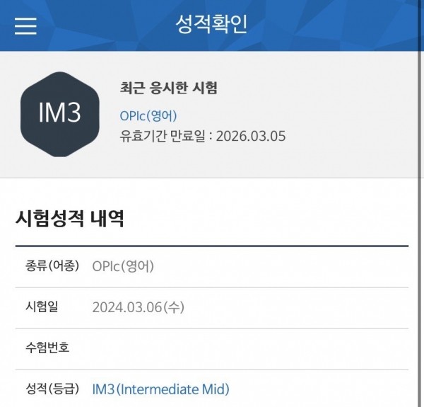 제 직무의 특성상, 취업 지원서 제출 시 최소 IM2 등급 이상이 요구되므로, 기존의 OPIC 성적이 만료된 상태에서 급하게 2주 내에 새로운 점수를 취득해야 했습니다.