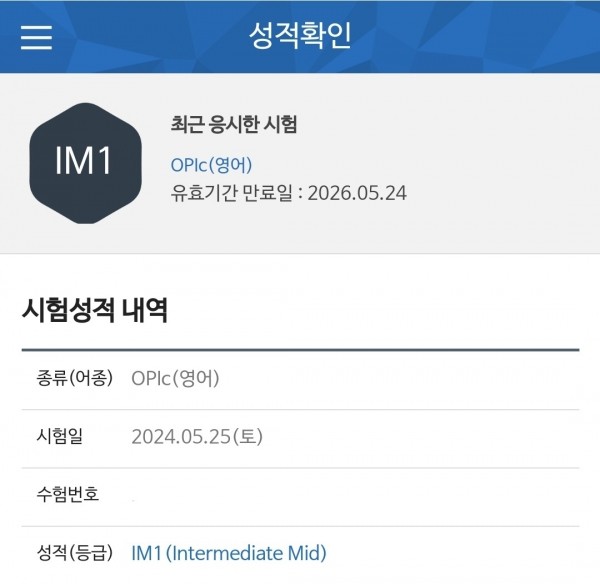 강사님의 코칭을 믿고 시험날 자신감을 가지고 준비한 스크립트를 자연스럽게 답변하기 위해 노력했고 원하던 IM1을 취득하게 되었습니다
