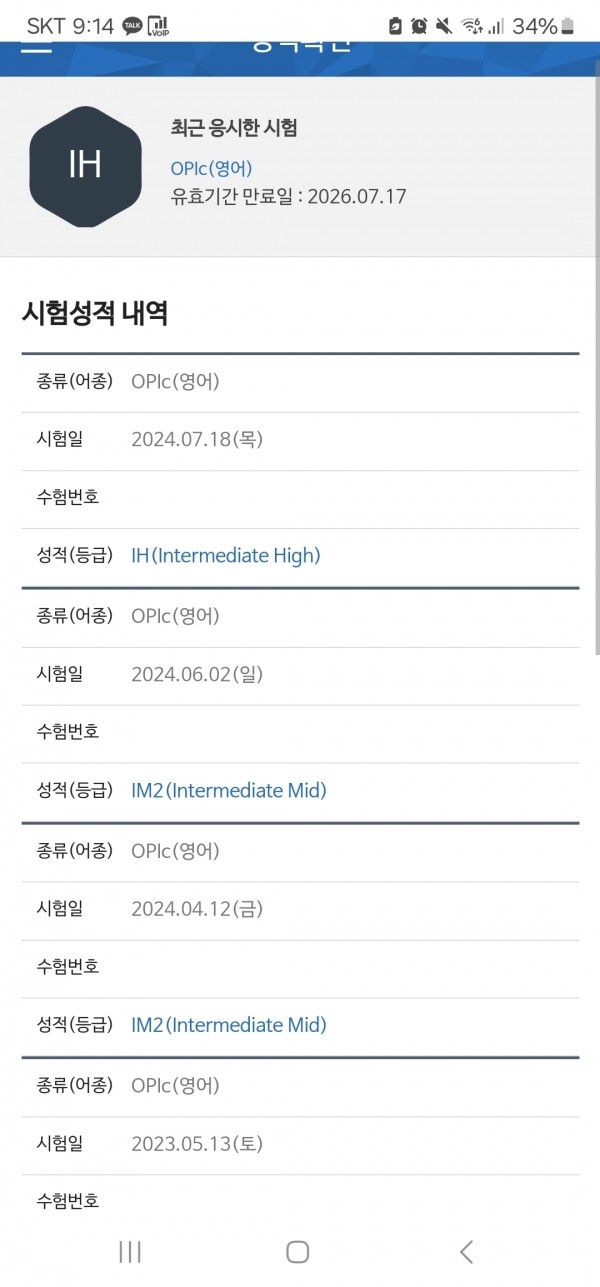 [IH / 12회 12시간] 사내 해외지원 프로그램을 위해 오픽 성적이 필요했습니다.