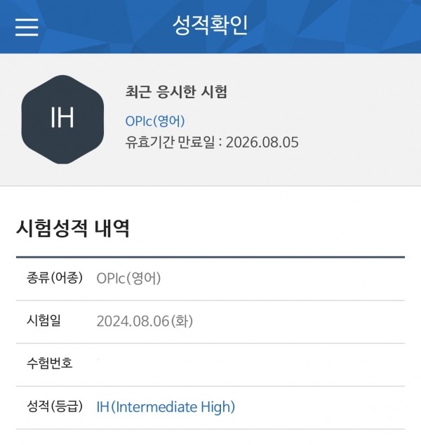 저는 시험 전 40분을 다 못채울 것 같다고 생각하였지만 생각보다 시간이 부족하였고 가장 놀랐던 점은 저 제외 모든 응시생들이 20분 후에 퇴실한다는 점이었습니다. 그러나 사전에 강사님께서 시간에 연연하지 말고 다른 분들이 퇴실하시더라도 개의치말고 본인하던거 하면서 집중하라고 하셨던 말씀이 생각났고 저는 그 말씀대로 제가 준비해왔던 스크립트를 잘 말했던 것 같습니다. 그 결과 제가 목표하던 점수인 IH를 한번의 시험 만에 달성하게 되었습니다.