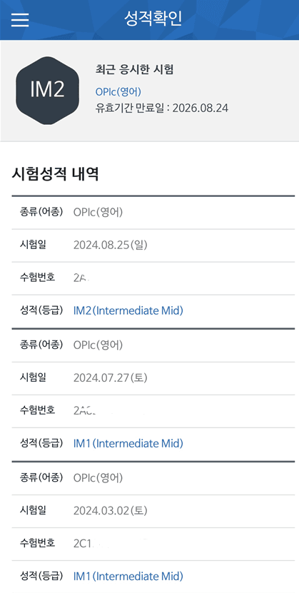 졸업까지 시간도 얼마 남지 않았었고, 혼자서 공부했을 때 계속 IM1만 나와서 이대로는 안 되겠다 싶어서 612어학원에 등록했습니다.