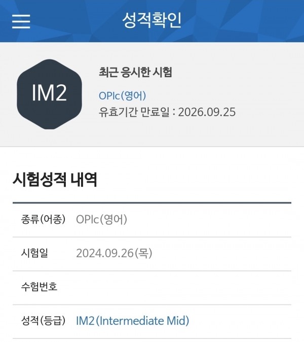 영어 왕초보인 제가 IM2 등급이 나올 줄 상상도 못 했습니다.