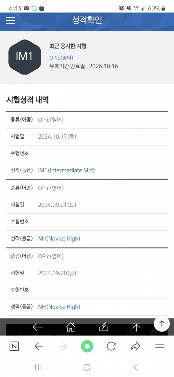 이전 과외에서 1분 30초 가량 발화량의 스크립트 40개를 외우게 하였고 외운 스크립트로 시험 쳤으나 낮은 등급을 받았었는데 612어학원 방식인 어느 질문이든 대답할 수 있는 나만의 스크립트를 평가자가 잘 들을 수 있게 강세를 교정하여 발화하는 방식으로 한방에 등급 획득 하였습니다. 특히 정소현 강사님께서 하나하나 디테일하게 체크해주시고 피드백까지 완벽히 해주셔서 시험장에 갔을땐 걱정없이 마음 편히 시험을 칠 수 있었습니다. 승격을 위해 IM1을 취득하였지만 IH도 따고 싶은 욕심이 생겨 수강을 추가 신청 하였습니다.