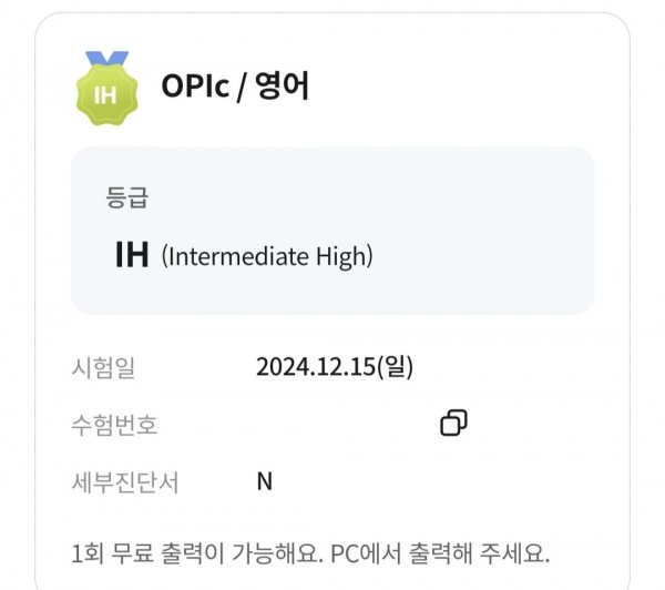 피드백 주셔서 IH 등급을 딴것 같습니다