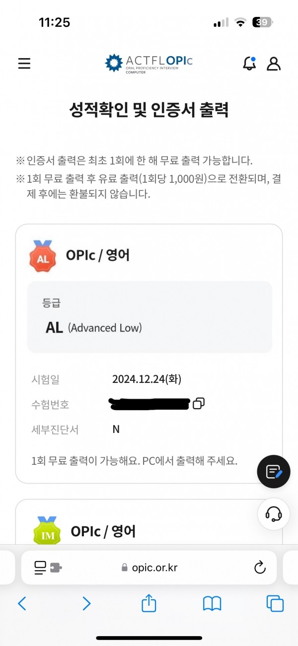 또 다시 많은 격려를 통해 정신을 차리고 2번째 시험에서 IM3를 받을 수 있었습니다. IM3를 받은 후 이제 충분히 준비해서 IH-AL을 받을 수 있겠다라는 희망이 생겼습니다.