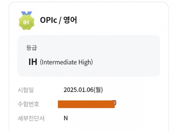 마지막 오픽성적은 9년전에 딴 IM2 등급이 전부였고 근 몇 년간은 영어공부는 아예 안하고 있었어요.