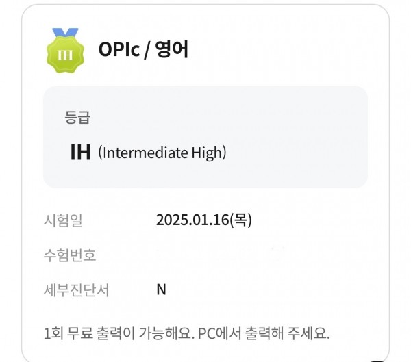 외국계회사 기술영업쪽으로 취업을 하고싶어가지고 알아보다가 영어말하기시험 opic을 알아서 준비하게됐어요 공부를 안한지 5년이 지나고 영어를 뱉어본적이 없었던 저인데 그냥 한번 해보자는 마음으로 18회 수업 끊고 공부했던거같아요 사실 노베이스거나 다름없는데 계속 하면서 준비하니까 ih등급이 나온거같아요