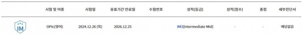 오픽성적이 필요하여 시험을 여러번 시도 해보았는데, 모두 IM1 이 나왔습니다.