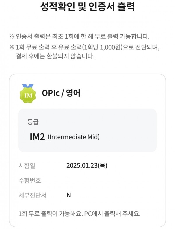 오픽을 처음 접했을 때 단기건에 등급을 획득하는게 어려웠는데요 Kelly 강사님 덕에 IM2 등급을 획득하였습니다.